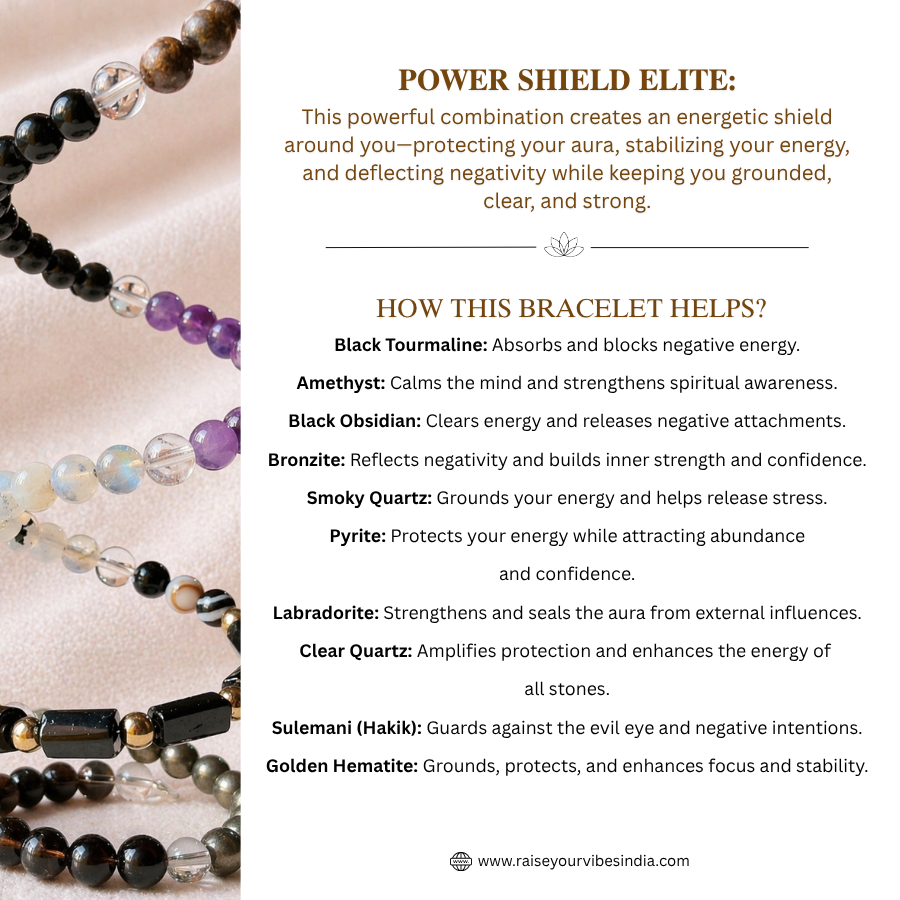 The Power Shield Bracelet is designed to guard your aura, ground your energy, and keep you strong amidst negativity.